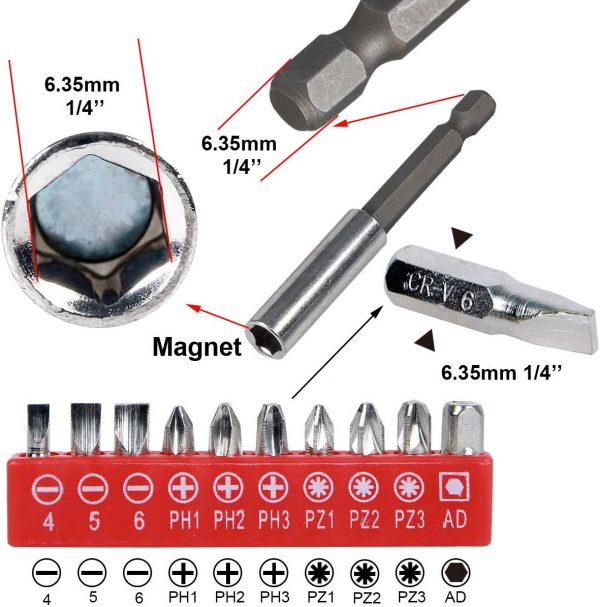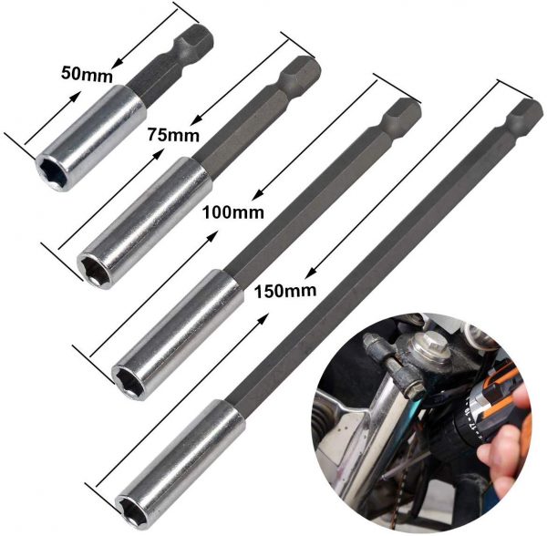 1/4 inch(6.35mm) magnetischer bithalter lang Sechskantschaft Verlängerung Halter, Bohrmaschine Verlängerungsstange 50/75/100/150mm + 10PCS Bits für Bohrmaschine