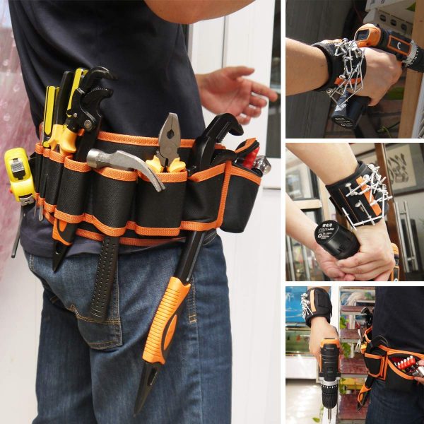 Werkzeuggürtel Werkzeugtasche aus 600D Oxford Stoff + Magnetisches Armband Magnetarmband mit 15 leistungsstarken Magneten