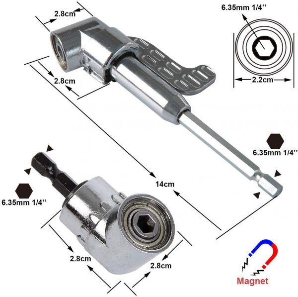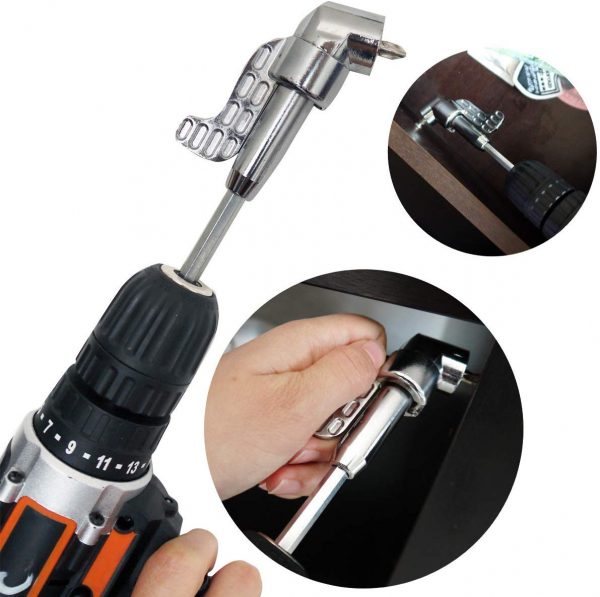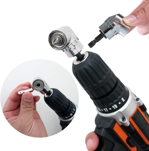 3 in 1 Winkelschrauber Set: 105° langer Winkelschrauber Vorsatz, kurzer Winkelschrauber Aufsatz und 10er gebräuchlich Schraubendreher.